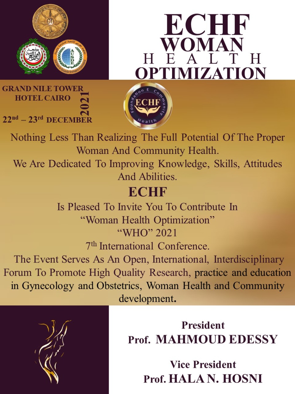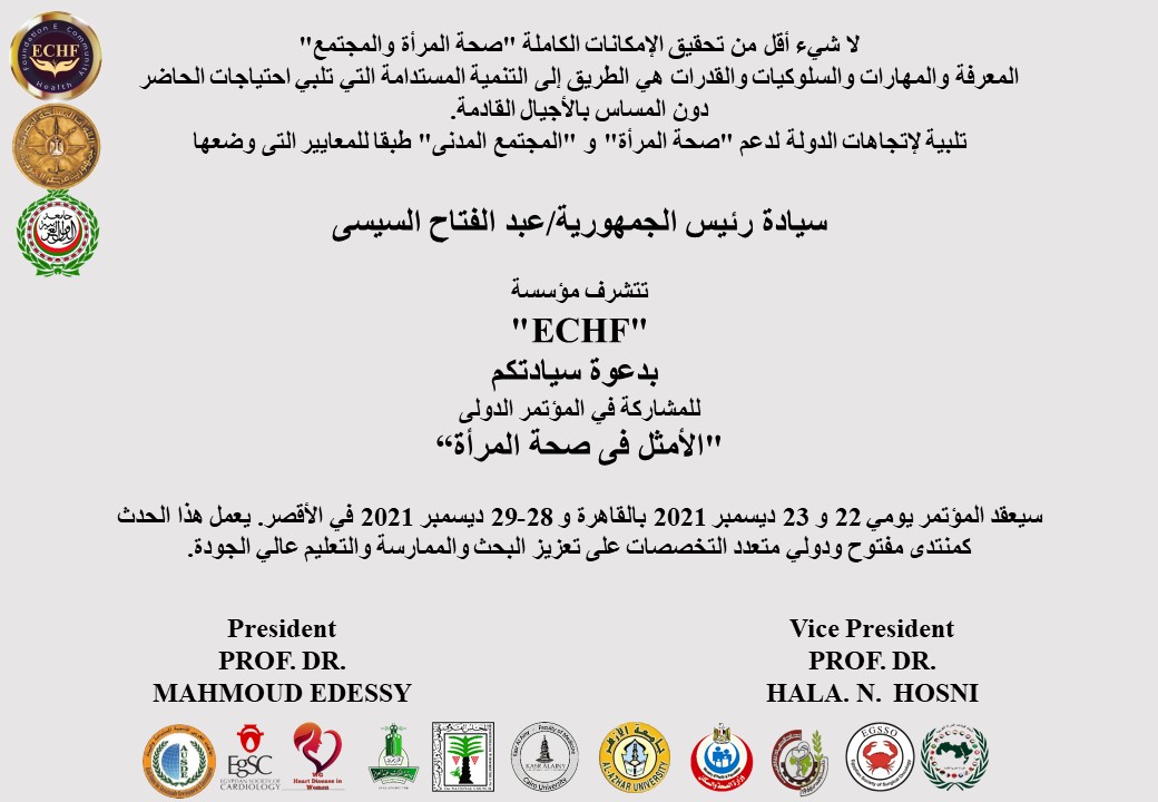 بدعوة كريمة من مؤسسة اشفي “ECHF” يشارك إتحاد قيادات المرأة العربية في المؤتمر الدولي ” الأمثل في صحة المرأة ” والذي سينعقد يومي ٢٢&٢٣ ديسمبر بالقاهرة و ٢٨&٢٩ بالأقصر حيث يعمل هذا المؤتمر كمنتدى مفتوح ودولي متعدد التخصصات