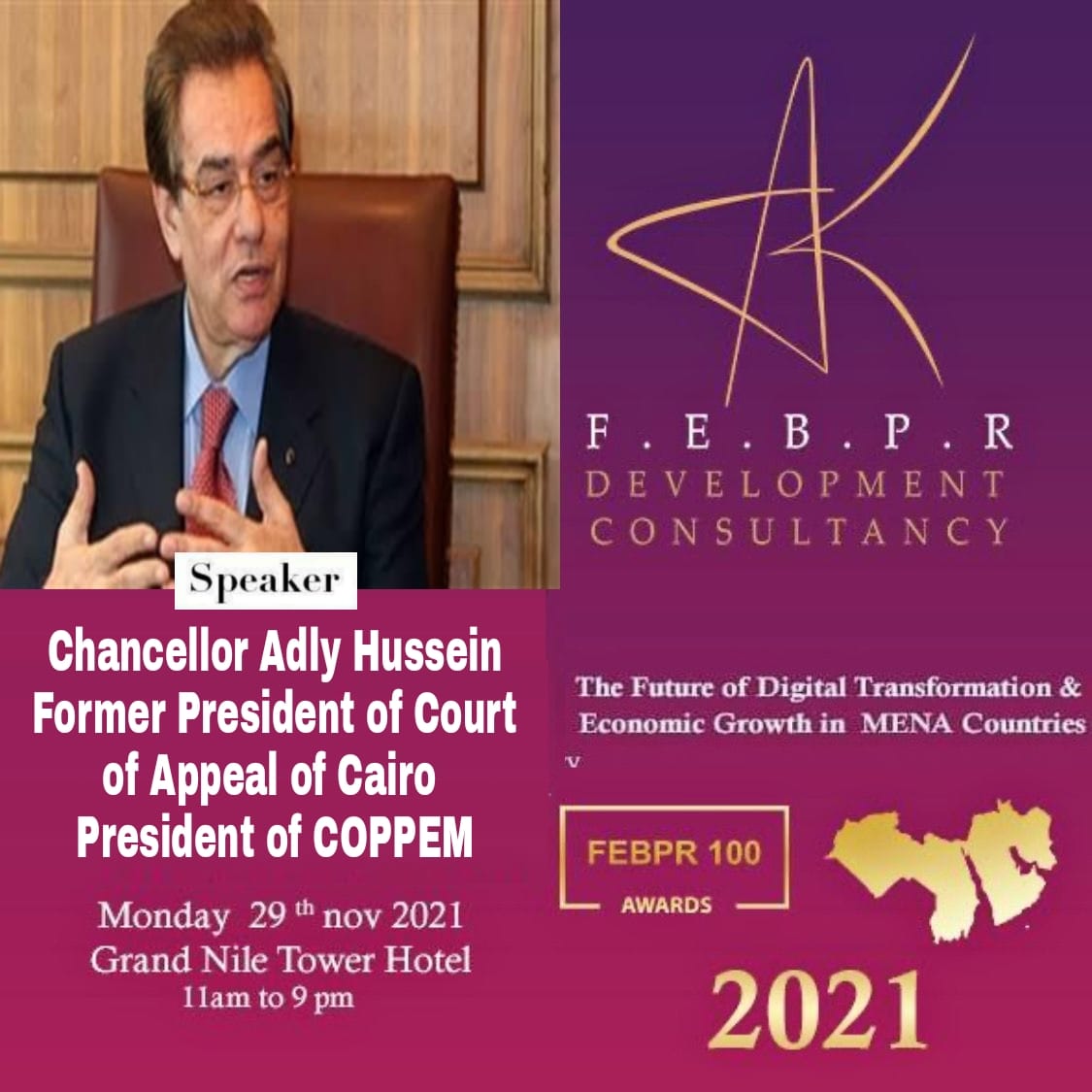 و سوف يتم تكريم السيدات المشاركه تقديرًا لمساهمتهم فى نمو وازدهار الإقتصاد المصرى و بحضور بعض الوزراء و السفراء العرب و الأجانب من كل أنحاء العالم .