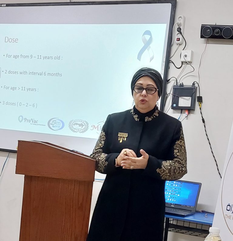 وتكلمت الدكتورة هالة عدلي حسين عن سرطان عنق الرحم وكيفية الحماية من المرض عن طريق التطعيم والكشف المبكر
