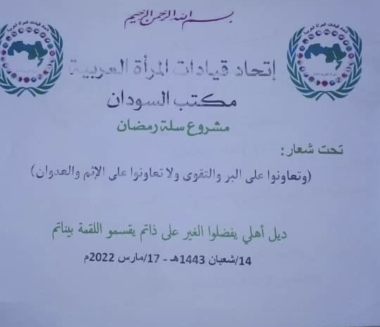تحت شعار ” وتعاونوا على البر والتقوى انطلقت مسيرة إتحاد قيادات المرأة العربية السودان بتوزيع سلة رمضان