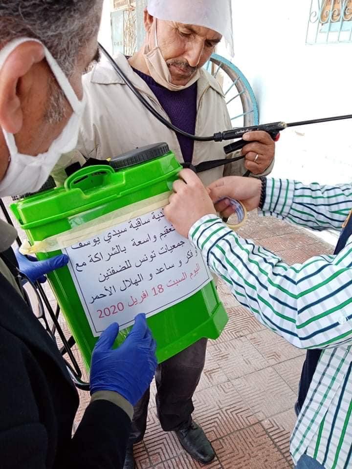 نظمت اليوم جمعية فكر و ساعد بالشراكة مع بلدية الجهة و الهلال الأحمر الساقية وجمعية تونس للضفتين و إتحاد قيادات المرأة العربية – تونس يوما توعويا و تحسيسيا حول الوقاية من فيروس كورونا الى جانب حملة تعقيم داخل المدينة..الشكر موصول لكل من تفاعل مع هذه المبادرة.رئيس بلدية الساقية السيد المعتمد…الشرطة البلدية و الأعوان أعضاء المجلس البلدي..مساندة إذاعة الكاف و تغطية هذا الحدث… دكتورة هادية العبيدي.