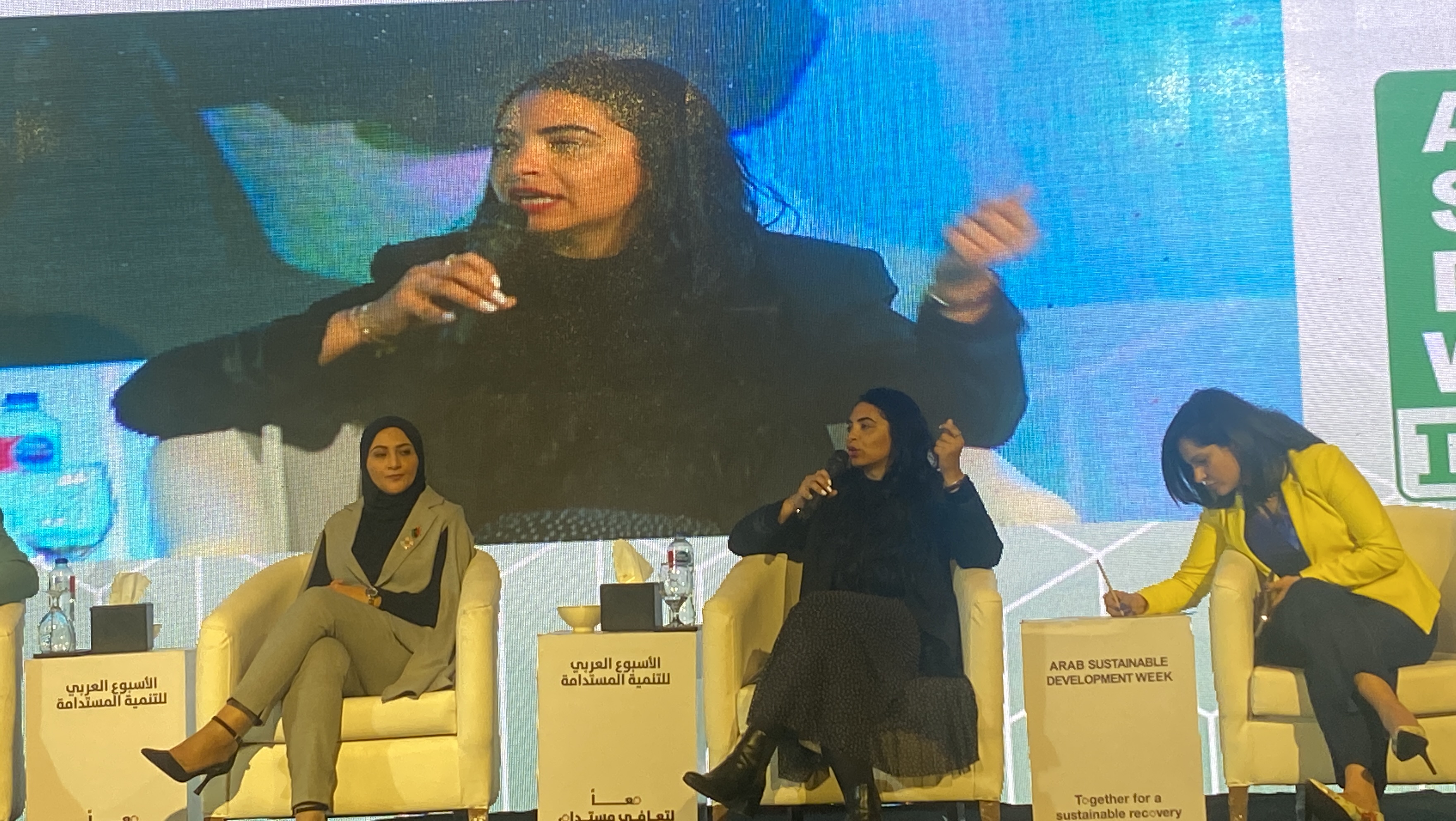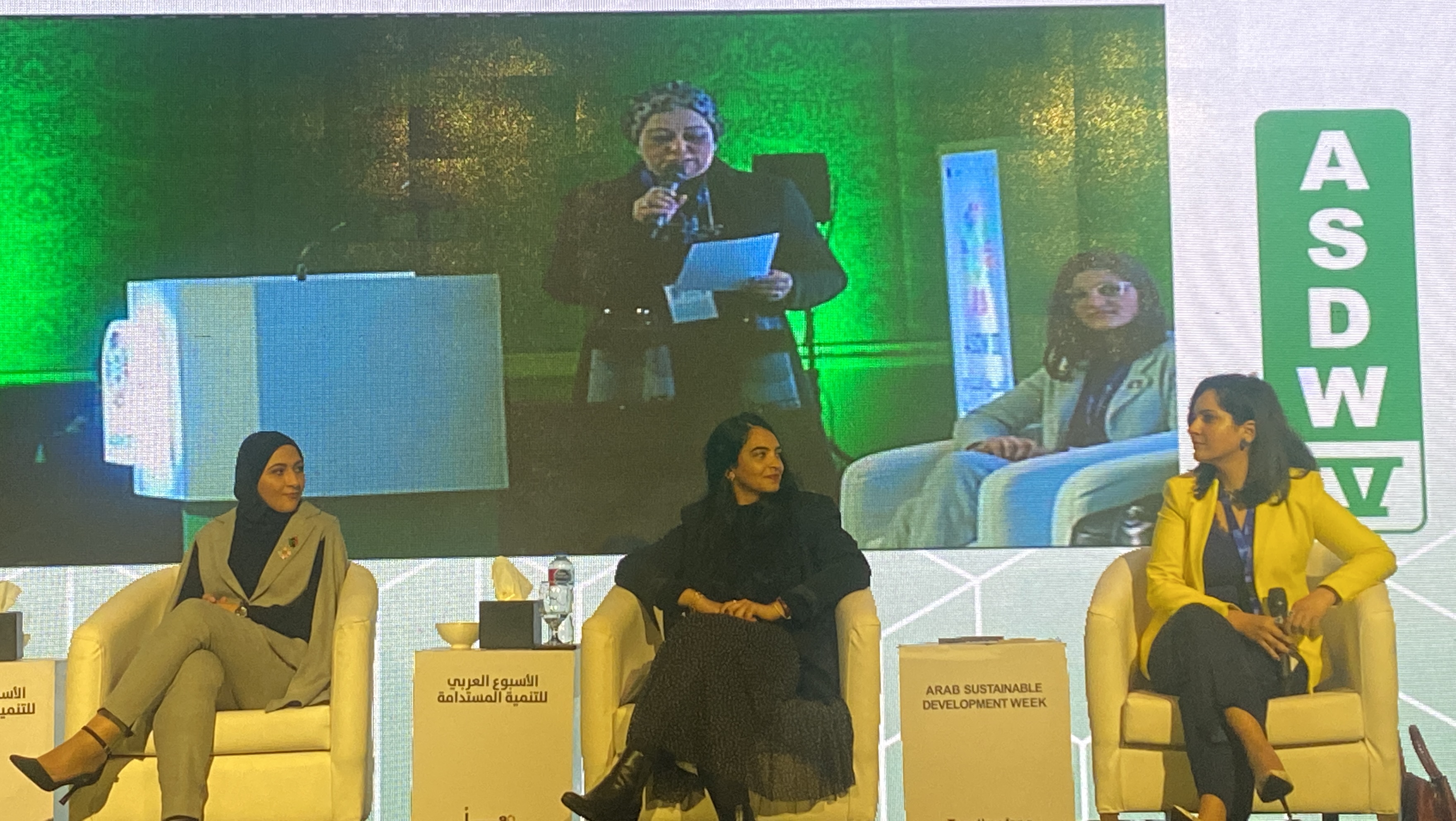 ويذكر أن إتحاد قيادات المرأة العربية قد شارك في فاعليات اليوم الثالث لأسبوع التنمية المستدامة حيث ترأست الدكتورة هالة عدلي حسين الأمين العام للإتحاد الجلسة الحوارية التعافي الشامل الأستاذة نجوى العاصي متحدثة مبادرة share smile والدكتورة صباح الحكيم المتحدث الإعلامي لاتحاد قيادات المرأة العربية والأستاذة رانيا أيمن رئيس مجلس الإدارةentreprenelle وإعلامية ومذيعة الأستاذة داليا أشرف ومخرجة سينمائية الأستاذة نور القرشي والمستشار العلمي وعضو هيئة التدريس بالأكاديمية الوطنية للعلوم الشامل الدكتورة نورهان النجار واختتمت الجلسة بكلمة من الدكتورة بدرية سليمان رئيس الإتحاد مع حضور معالي المستشار عدلي حسين وأعضاء الإتحاد الأستاذة الدكتورة إقبال السمالوطي والدكتورة سحر فؤاد والدكتورة نداء الحديدي والأستاذة نهى سعيد والدكتورة صفاء الأشقر