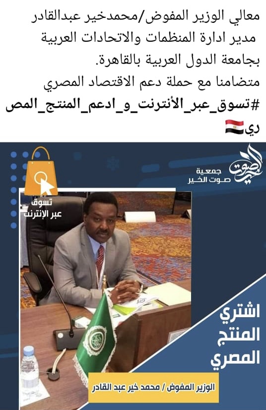 إتحاد قيادات المرأة العربية برئاسة الدكتورة بدرية سليمان والأمين العام الدكتورة هالة عدلي حسين يشكر سعادة معالي الوزير المفوض السفير محمد خير مدير إدارة المنظمات بجامعة الدول العربية لتضامنه مع حملة دعم الإقتصاد المصري