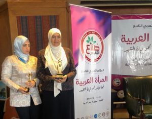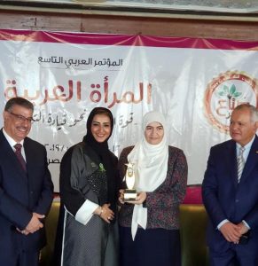 وذلك لفوزها بالوسام الذهبي للمرأة العربية القيادية والريادية والذي إقيم بفندق سيراميس – القاهرة