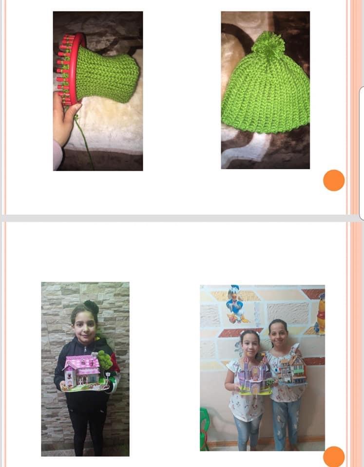 حيث تم الترتيب مع مجموعة من الأمهات الفاضلات للتعويض عن النقص الحاصل لدى الأطفال وتشجيعهم على عمل بعض النماذج من الأشغال اليدوية والمجسمات بالإضافة إلى إعادة التدوير لاكياس الشيبس وعمل زينة باشكال مختلفه( كما هو موضح في الصور).