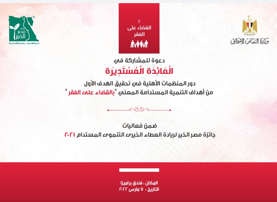 بدعوة كريمة من الأستاذة الدكتورة إقبال السمالوطي رئيس اللجنة الإجتماعية بالاتحاد مشاركة إتحاد قيادات المرأة العربية في فعاليات المائدة المستديرة حول دور المنظمات الأهلية في تحقيق الهدف الاول من أهداف التنمية المستدامة برعاية وزارة التضامن ومؤسسة مصر الخير