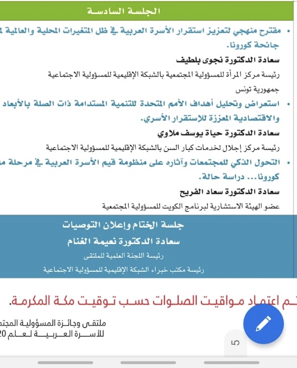 مشاركة الدكتورة نجوى باللطيف في ” ملتقى وجائزة الأسرة العربية والمسؤولية المجتمعية لعام ٢٠٢٠”