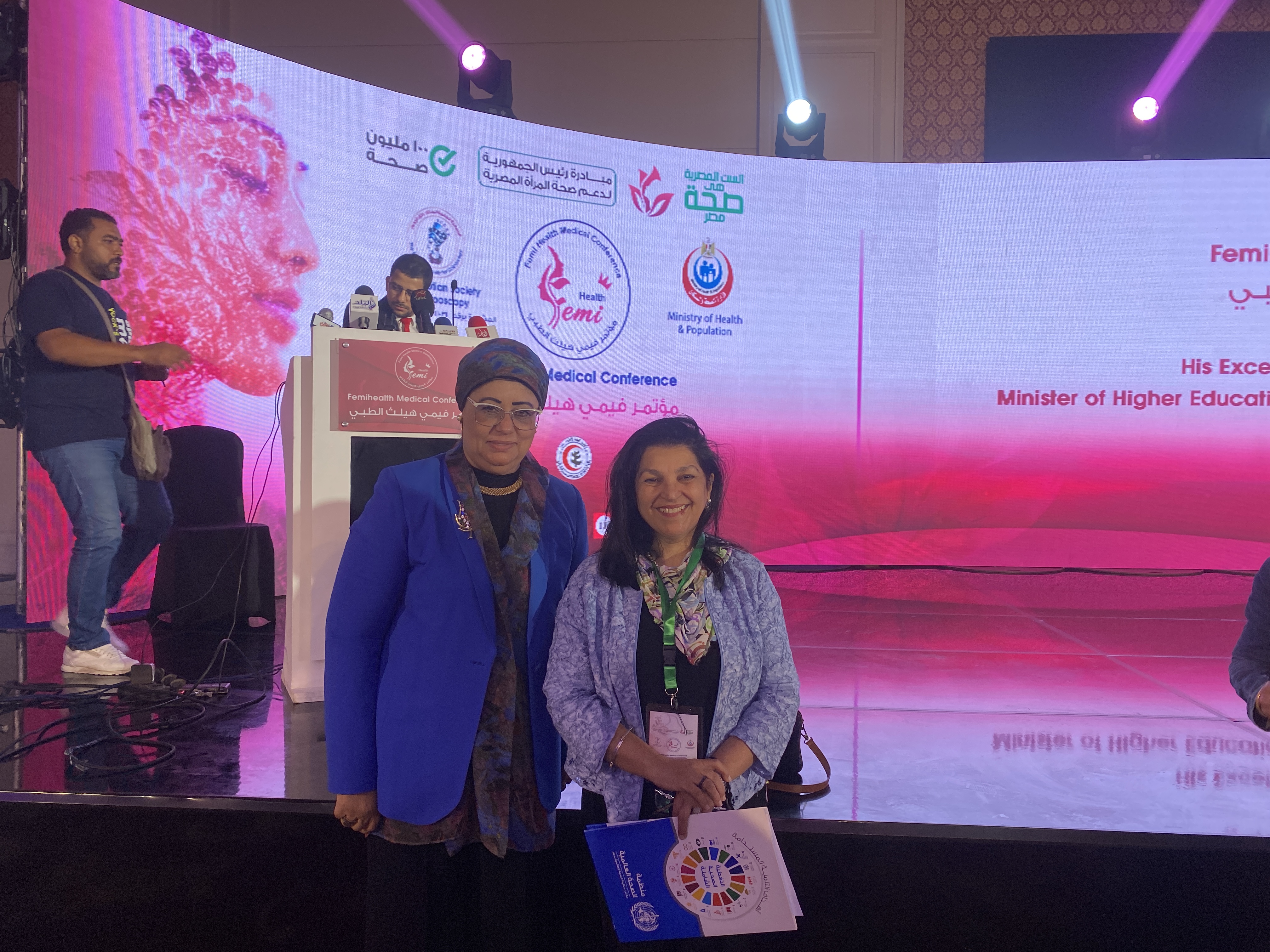 À l’invitation de la Société égyptienne pour l’endoscopie cervicale et dans la poursuite du principe de partenariat des Objectifs de développement durable à travers le protocole de coopération signé entre la Fédération Des Femmes Dirigeantes Arabes et la Société égyptienne pour l’endoscopie cervicale, le premier jour de la participation du Dr. Hala Adly Hussein, Secrétaire Général de la Fédération et Président de la compagnie Bio Misr dans la conférence Femi health durant deux jours ,sous l’auspice du Dr. Khaled Abdul Ghaffar qui travaille par intérim au ministère de la Santé et de la Population ,en présence d’une constellation d’experts mondiaux dans le domaine des tumeurs féminines en coopération avec: