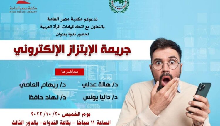 Sous les auspices de la Fédération des Leaderships des Femmes Arabes et en coopération avec Misr Public Library, un séminaire éducatif intitulé “le crime du chantage électronique” a été organisé pour sensibiliser aux dangers du chantage électronique (causes, prévention et méthodes de lutte,  et lois punissables par ce crime). Les participantes au symposium étaient DR/Hala Adly Hussein ,DR/Riham El Assy ,Dr /Dalia Younis et Dr/Nahad Hafiz.