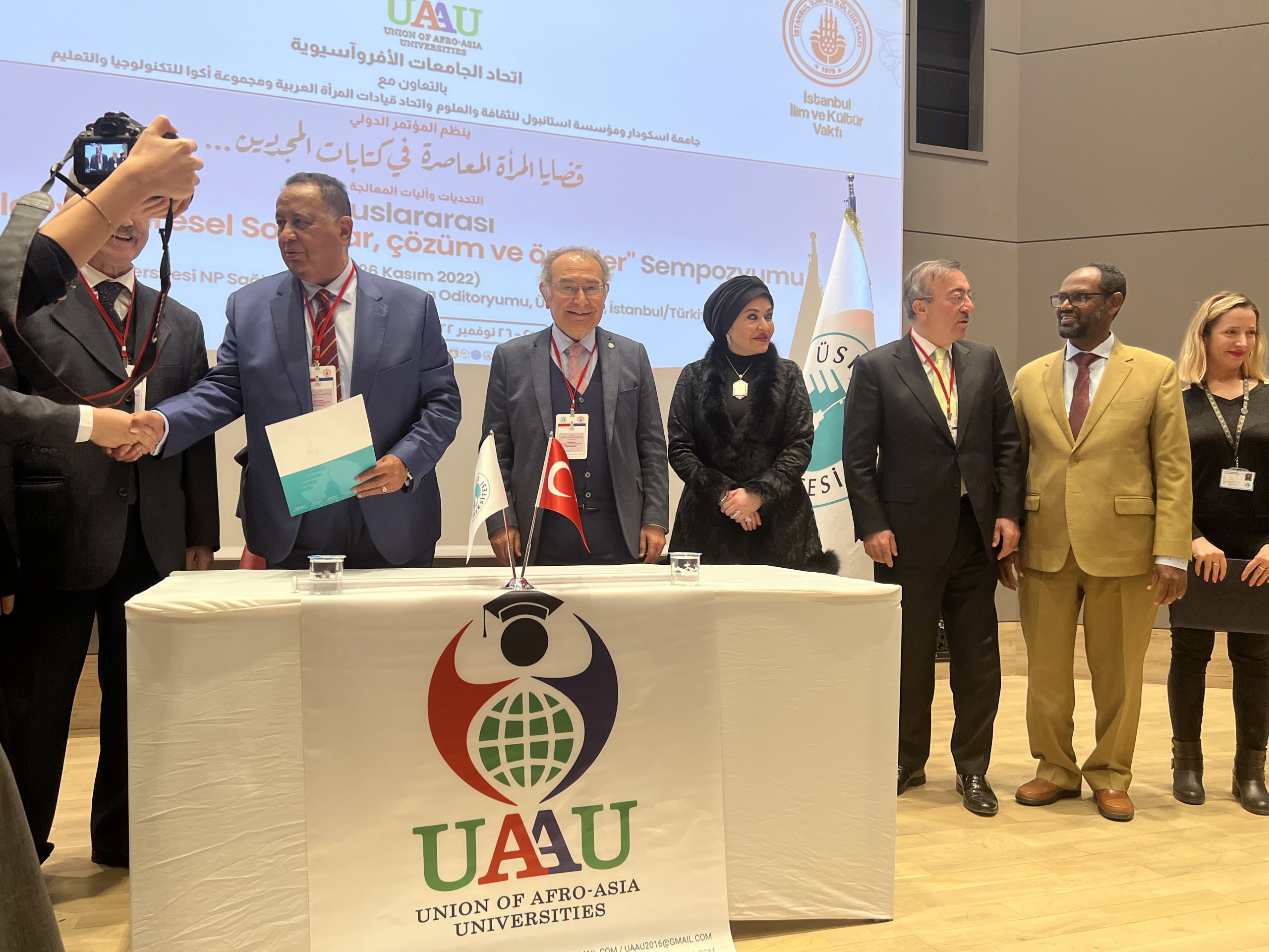 En présence d’un groupe d’experts et des professeurs des universités de tous les pays afro-asiatiques, le professeur Saeed yougah “Président du conseil d’administration de la Fondation d’Istanbul pour la culture et la science”, le professeur Amal Fathalla Zirkshi, vice-président de l’Union des universites afro-asiatiques , Professeur Radwan Hersi, le sous-ministres de la Somalie, M. Mohammed Anil, ministre d’État aux Affaires islamiques des Maldives, le professeur Ibrahim Ahmed Abdelaziz Ghandur, président de l’Université Razi du Soudan, l’ancien ministre soudanais des Affaires étrangères, Dr Zainab Al Bayati, Présidente du conseil d’administration du fleur orientale et professeur Nouzhit le president de l’universite d’ ESCODAR.