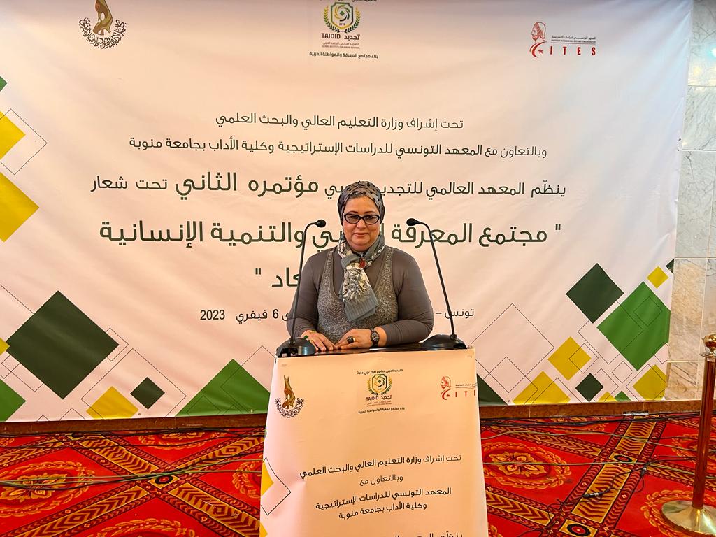 Participation de la Fédération des Leaderships des femmes arabes à la deuxième Conférence intellectuelle internationale de l’Institut mondial pour le renouveau arabe intitulée “Société arabe du savoir et développement humain – dimensions et défis”, Tunisie
