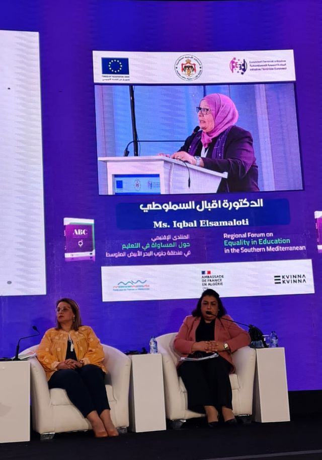 Dr. Iqbal Samalouti Présidente du Comité social de la Fédération et Secrétaire général du Réseau arabe d’alphabétisation a participé au Forum régional sur l’égalité dans l’éducation dans la région du Sud de la Méditerranée
